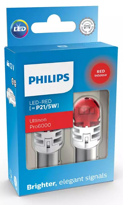 Pirn 12V PHILIPS Ultinon Pro6000 P21/5W BAY15d LED punane 2tk