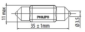Pulkpirn 12V PHILIPS LED 4000K Ultinon Pro6000 38mm SV8,5-8 12V C5W