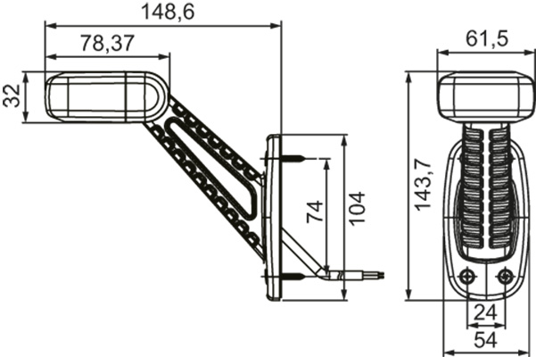 Küljetuli Hella LED ValueFit Vasak, pun/valg/koll, 10-30V, 148x54x144mm