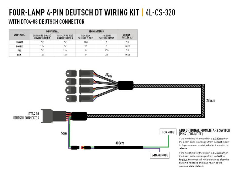 Lisatulede ühendusjuhtmed Lazer Four-Lamp 4-Pin Deutsch DT Wiring Kit, with DT04-0
