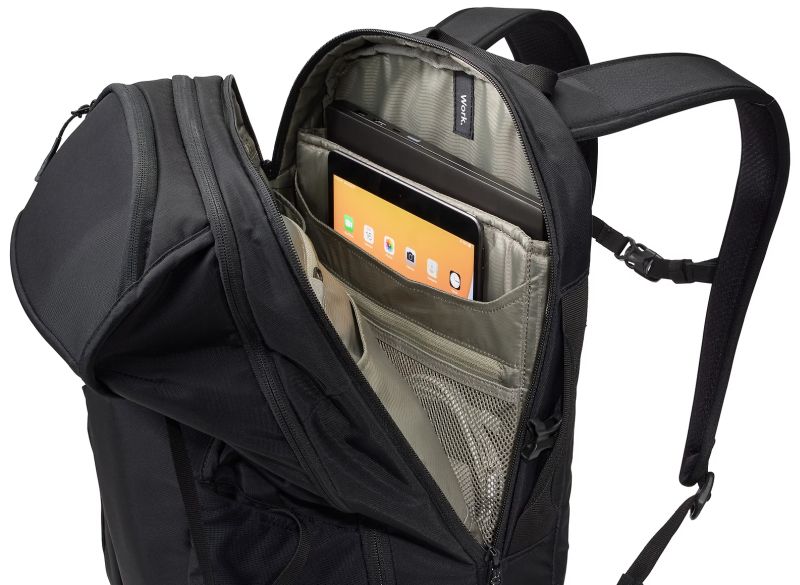 Väljaulatuvad taskud kaitsevad kuni 15.6-tollist sülearvutit ja 10.5-tollist tahvelarvutit, samal ajal kui korralduspaneel võimaldab väiksemaid tarvikuid, pastapliiatseid ja võtmeid kiiresti kätte saada.