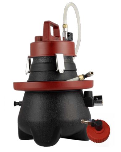 Pidurisüsteemi õhutustööriist õlipaagist survestamiseks. Väga turvaline ja tugeva konstruktsiooniga seade. Töötab töökoja standartu suruõhu süsteemi pealt. Suur 2,5L pidurivedeliku mahuti, milles on lihtne vahetada pidurivedelikku. Seadistatud 1,5bar rõhule, ülerõhuklapp seadistatud 1,7bar. Välistab eksliku ülerõhu tekkimise. Vaikimisi varustatud EU standartkeermega pidurivedeliku paagi korkadapteriga.