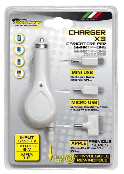 Autotarvik, telefonilaadija 12V 1A, 3-otsa