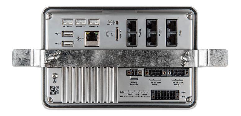 Ekrano GX on kõik-ühes jälgimisseade, millel on sisseehitatud 7-tolline puutetundlik ekraan ja laiaulatuslik ühenduvus tagaküljel. Ekrano GX pakub sarnast võimsust ja ühenduvust nagu Cerbo GX, kuid kuju on rohkem nagu Color Control GX: ekraan ja ühenduvus ühes kastis.