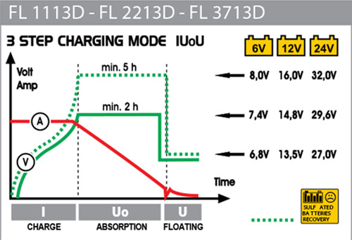 Akude puhul: 6 - 12 - 24 V, Min 8 - Max 130 Ah