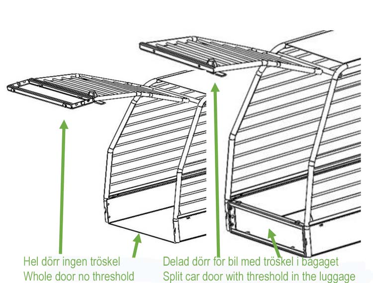 • Koerapuuril on muudetav uks, nii et seda saab kohandada sõltuvalt kas pagasil on lävi või mitte.