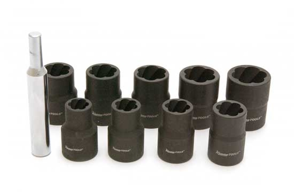 Lõõmutatud vasakkeermega lõikavad jõupadrunid, mida on lihtne keerata poldipea külge ja mis vasakule keeramise tulemusena poldi vabastavad. Komplekt sobib ideaalselt kahjustada saanud poldipeade ja õlikorkide eemaldamiseks.