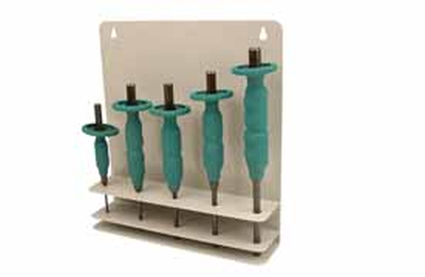 Pikad tornid, ümarad, ergonoomilised, isoleeritud käepidemega. Varustatud metallist alusega, riputatav seinale.
