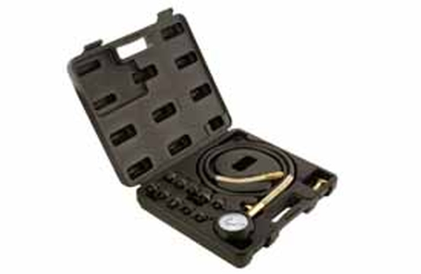 Täielik komplekt mootori õlirõhu mõõtmiseks ja rõhuandurite testimiseks. Kõigil adapteritel on ühendamise lihtsustamiseks kiirliitmikud.