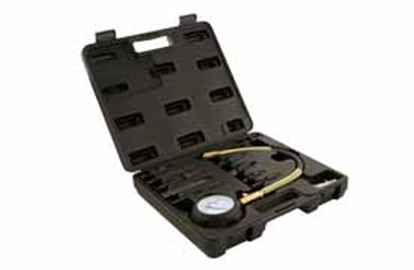 Täielik komplekt diiselmootorite kompressiooni mõõtmiseks. Komplektis sisalduvad mõõdik koos kaitseklapiga, paindvoolik ja hõõgküünalde eri keermete adapterid.
