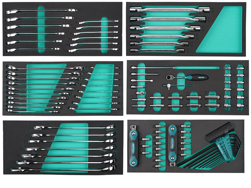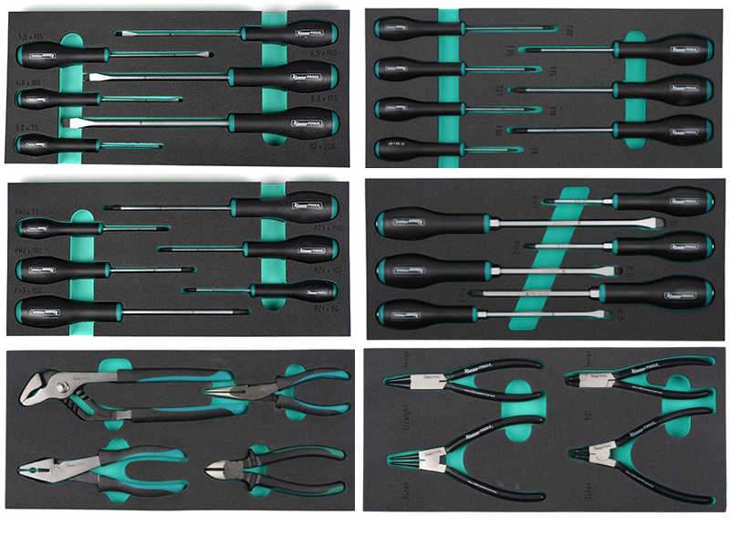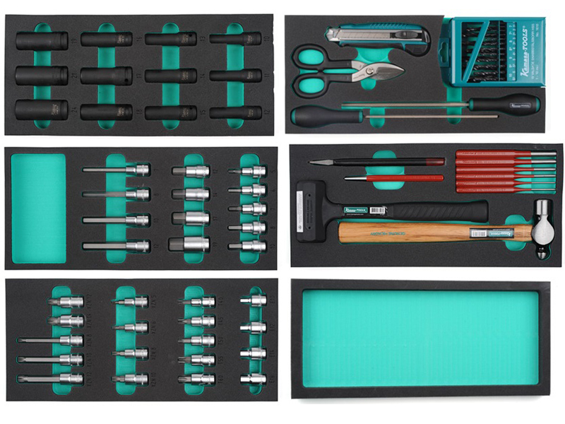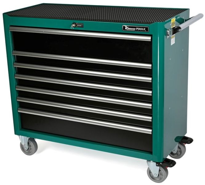 Sõiduki mehaanikule kohandatud väga põhjalik tööriistakäru. 7 laia sahtliga käru, millest 2 alumist sahtlit on muude tööriistade jaoks tühjaks jäänud. Komplektis on töökindel kummist matt tööpinnale ja õhemad matid kõigile sahtlitele. Korraliku tööpinnaga väga põhjalik liikuv tööriistakäru.