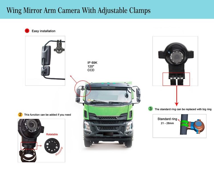 Tagurduskaamera veoauto peegli külge, 120 kraadi, vibratsioonikind