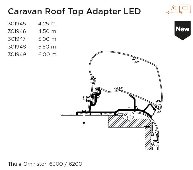 Markiisi tarvikud ja varuosad THULE Adapter Roof Top Caravan LED 6,00 m