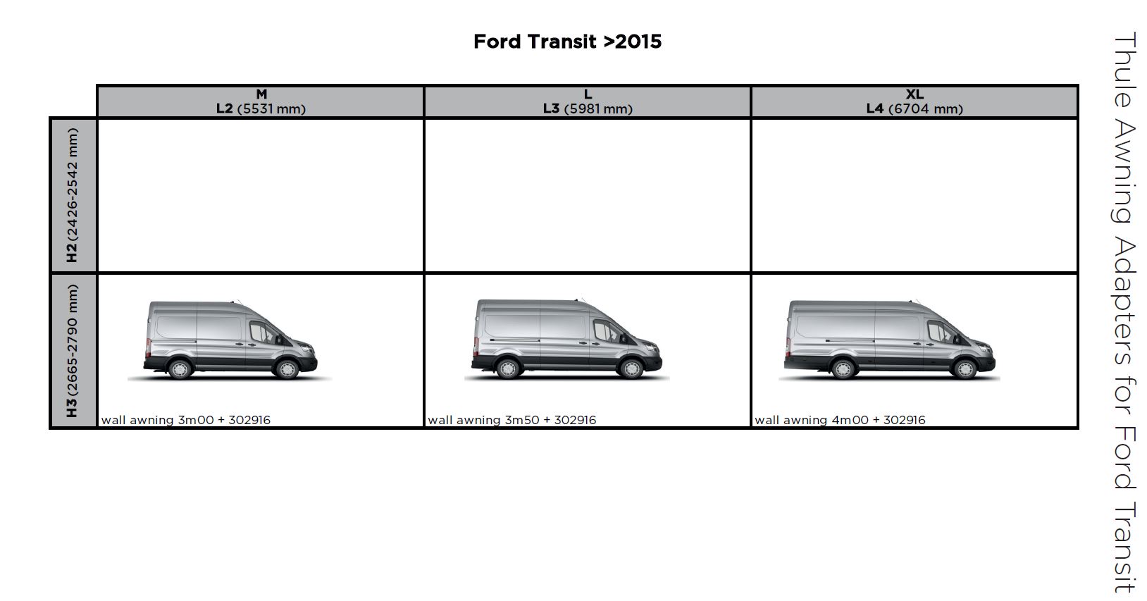 Markiisi tarvikud ja varuosad THULE Ford Transit H3 14-
