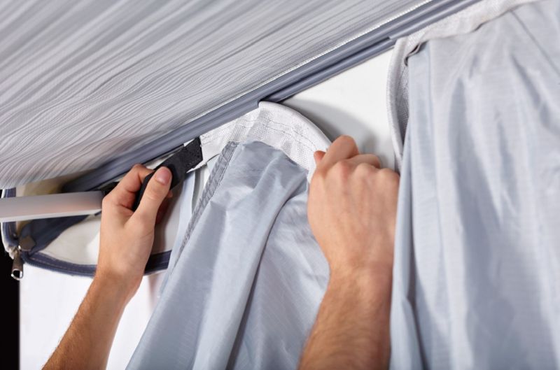 • Profiilid saab hõlpsalt libistada üle integreeritud soone, mis on kinnitatud varikatuse Thule Omnistor 1200 siseküljele.