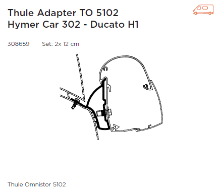 Markiisi tarvikud ja varuosad THULE TO 5102 Hymer Car 302 - Ducato H1