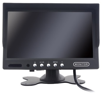 7-tolline monitor sõidukitele, toetab ühendamiseks kahte kaamerat, ainult ühe kaamera samaaegne vaatamine, M12 4PIN kruvipistikud, eraldusvõime 800x480, sõidukitele, millel on 12/24V pardapinge.