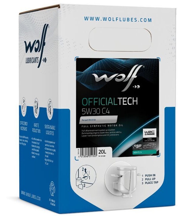 Mootoriõli 4T WOLF OIL WOLF OFFICIALTECH 5W-30 C4 BIB 20L